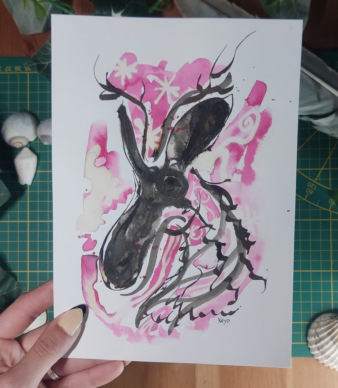 Técnica: Acuarela, tinta y legía